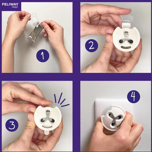 Öffnen Sie die Verpackung der Kartusche und legen Sie sie in den speziellen Verdampfer. Schließen Sie dann den Verdampfer an das Stromnetz an. Tun Sie dies in dem Zimmer, in dem sich Ihre Katze die meiste Zeit aufhält. Achten Sie darauf, dass der Verdampfer frei hängt. Stellen Sie es nicht unter Regale oder hinter Vorhänge, Möbel und Türen.