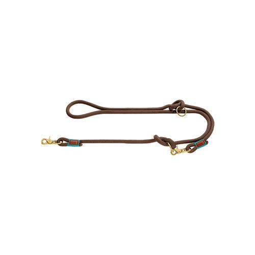Mit der verstellbaren Führleine Oss der Marke Hunter können Sie und Ihr Hund sich sehen lassen. Diese hübsche Hundeleine aus Tauseil hat ein maritimes Design, das mit Elementen aus Leder und goldfarbenem Metall abgerundet wird. Die Länge lässt sich leicht über zwei Ringe an verschiebbaren Knoten individuell einstellen.